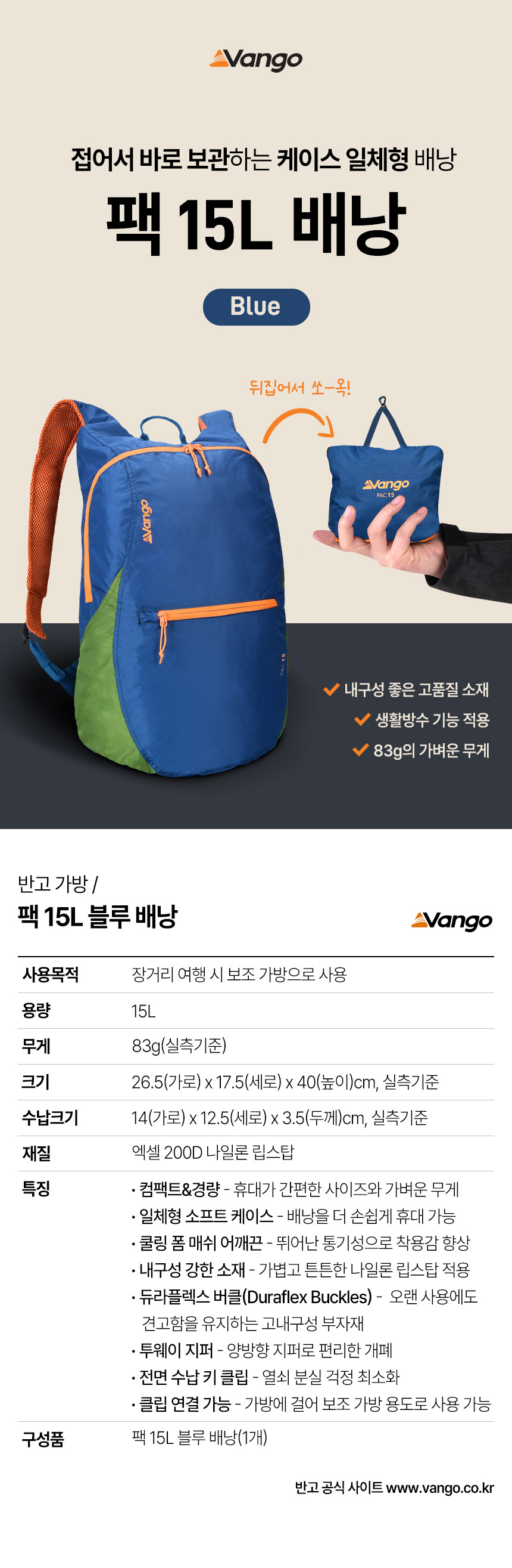 - home > ºê·£µå¸ô > ¹Ý°í(Vango) > [¹Ý°í]ÆÑ 15L ºí·ç ¹è³¶